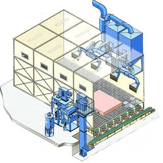 1、采用蜂窩式噴砂地板技術(shù),應(yīng)用風力輸送原理將砂料回收;