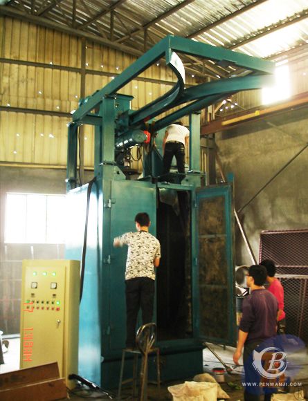 由蕭山某客戶采購的TB-Q378吊鉤式拋丸機設備,昨日已安裝調試完成,驗收合格,該機已由當日下午送達目的地,此機是按照客戶要求設計生產,雙吊鉤工作效率高,拋丸器兩個,采用斜角上下安裝法,此等設計可達到,工作時掛勾旋轉帶動工件,均可得到均勻的拋丸處理;更多詳細說明可參見站內相關頁面,或咨詢客服。