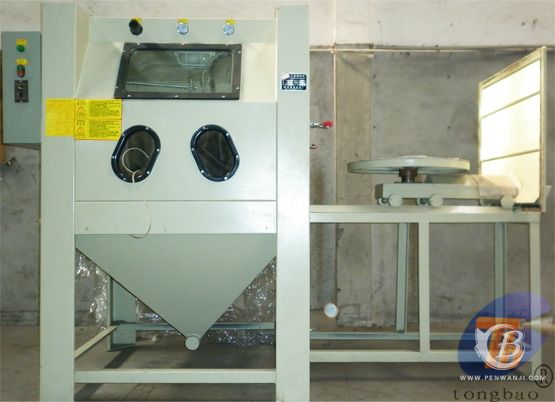 本公司研發(fā)生產(chǎn)完成TB-1212連體轉(zhuǎn)臺式噴砂機,此設備經(jīng)過不斷改裝完善,現(xiàn)已生產(chǎn)完成投入使用;采用標準干式噴砂機工作原理