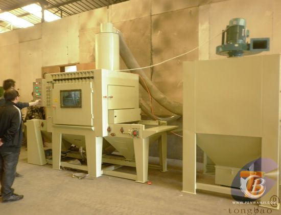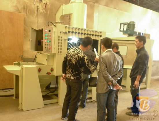 為某客戶設計的鋁型材專用皮帶輸送式噴砂機,現(xiàn)已調(diào)試完成,該機配置了12把噴槍,工作區(qū)寬度為80公分,工作時只須將工件放置于工作臺上