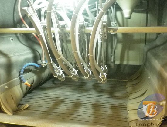 為某客戶設計的鋁型材專用皮帶輸送式噴砂機,現(xiàn)已調(diào)試完成,該機配置了12把噴槍,工作區(qū)寬度為80公分,工作時只須將工件放置于工作臺上,工件會由30條環(huán)形皮帶帶動,進入工作艙進行噴砂處理,工作速度可以根據(jù)產(chǎn)品的處理要求自行設定,設備在工作時基本處于密封狀態(tài),由于噴砂過程引發(fā)的環(huán)境虧染率極?。槐粐娚疤幚磉^的鋁件,表面會呈現(xiàn)一層砂鋼材質(zhì)外表面,檔次也將得到了質(zhì)的飛越。