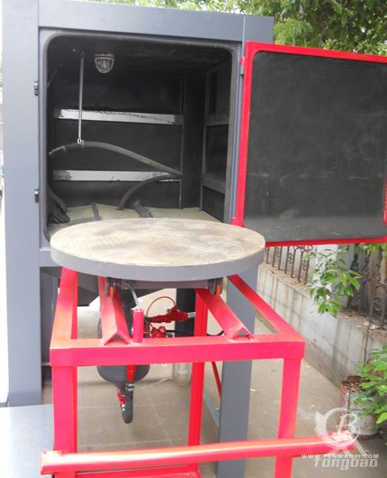 浙江通寶快迅:桐廬客戶采購的大型保壓TB1212推車轉臺式噴砂機已交付完成;此設備系根據客戶噴砂處理工件要求設計制造,與普通轉臺機不同的是,該機在回收砂料口增加了高壓罐,氣壓經過罐體的加壓,從而氣壓得到升華形成高壓氣流,高壓噴砂使噴砂處理工件的噴砂速度加快,效率值是普通噴砂的1-3倍左右。