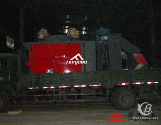 浙江通寶訊:杭州蕭山客戶吊鉤吊掛式拋丸機交付使用,機器型號為TB-Q378雙吊鉤式拋丸機,顏色灰紅,除塵器采用客戶要求定做的濾