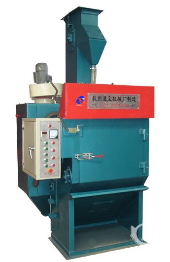 工作原理: 將工件放入橡膠履帶滾筒中,操作人員按下“運行”按鈕,拋丸室門氣動關(guān)閉,拋丸清理開始,履帶向前運行,工件不斷地進行翻滾,高效強力拋丸器將拋丸高速拋 射到正在翻滾的工件表面上,工件可完全均勻地得到清理。鋼丸通過履上的溜孔流入螺旋輸送機,再將鋼丸輸送到斗式提升機,經(jīng)斗式提升機提升到分離器,被分離 后存儲待用。拋丸結(jié)束后拋丸室門自動開啟,履帶反轉(zhuǎn),將工件缷出。