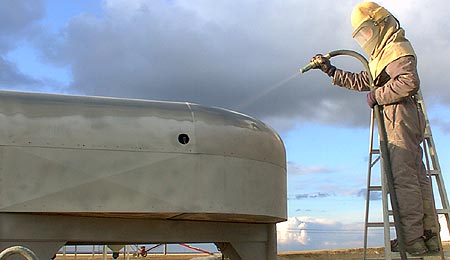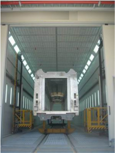 利用氣力回收噴砂房對(duì)火車(chē)表面進(jìn)行外型處理 工作現(xiàn)場(chǎng)示意圖 |